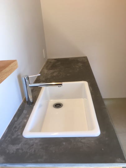 | モルタル仕上げの天板は無機質なアーバンライフを演出 キッチンは4メートル超のオーダー品で収納力も抜群 | ||||